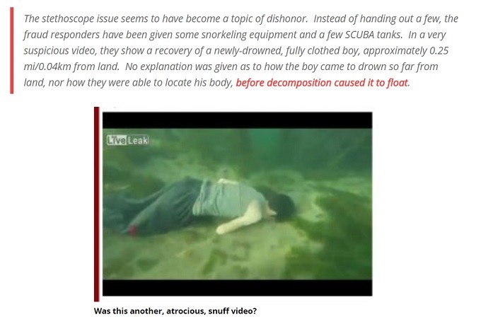Instead of actually acquiring a stethoscope, the Helmets subsequently acquired scuba gear and eerily recovered the body of a boy on the floor of the Euphrates River, approximately 0.25mi/0.04km from land.