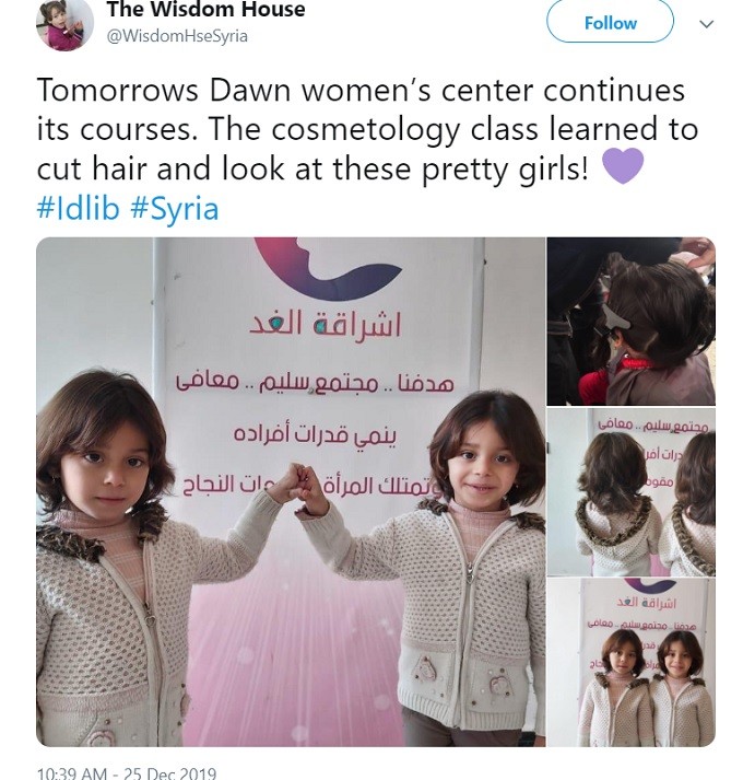 On Christmas Day, this Arkansas funded, women-less women’s center in al Qaeda occupied Idlib claimed to have had a hair-cutting lesson day.