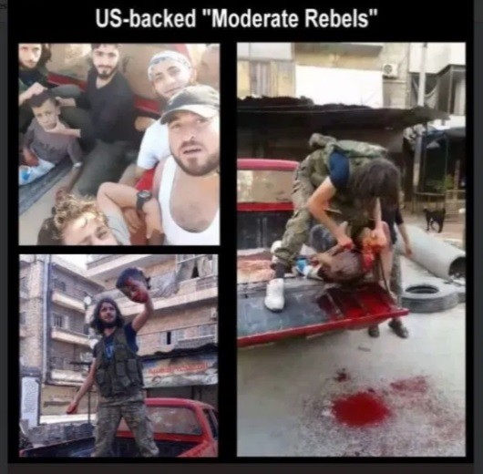 Murdered Syrian women’s bodies stepped on by NATO moderate opposition members.
