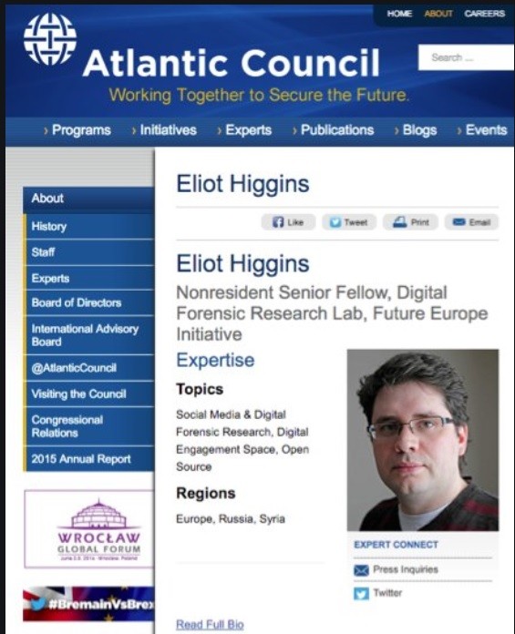 By 2013, the Council — given one million or more dollars by the self-anointed bastion of “community standards” — was running full steam in anti-Syria, war criminal propaganda. Its audience was given to such gems of moral ideals as Elizabeth O’Bagy, later forced to resign from another 501(c) think tank arm of NATO, the Institute for the Study of War, for having lied about a doctoral degree that she did not have (possibly because of her stellar ethics, she was immediately hired by Sen. John McCain, another war hawk).