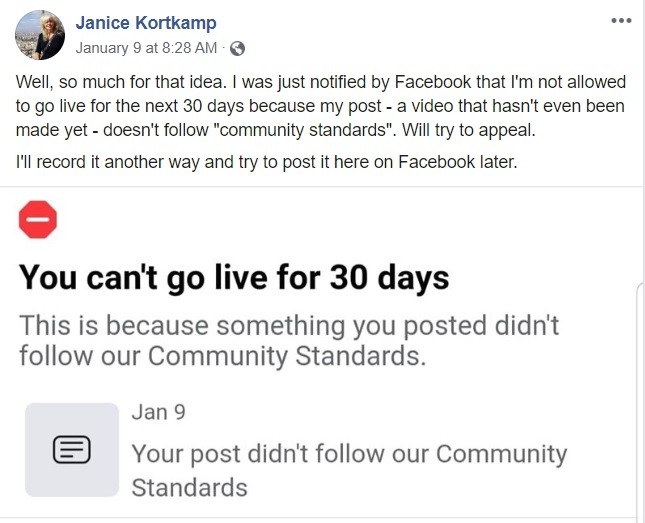 “To comply with these [US] #sanctions, we remove accounts maintained by or on behalf of a sanctioned party as well as content posted by others that supports or represents the sanctioned group or individual”. 15 Jan 2020, FB