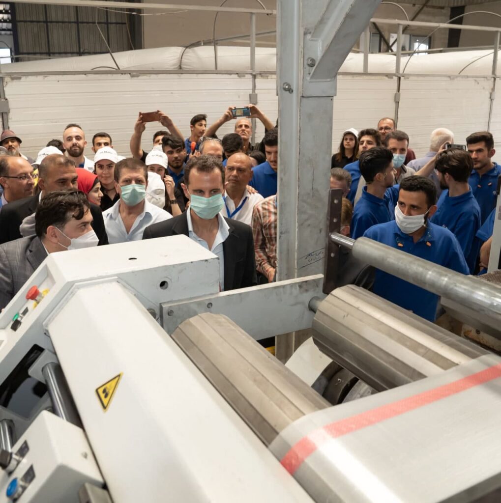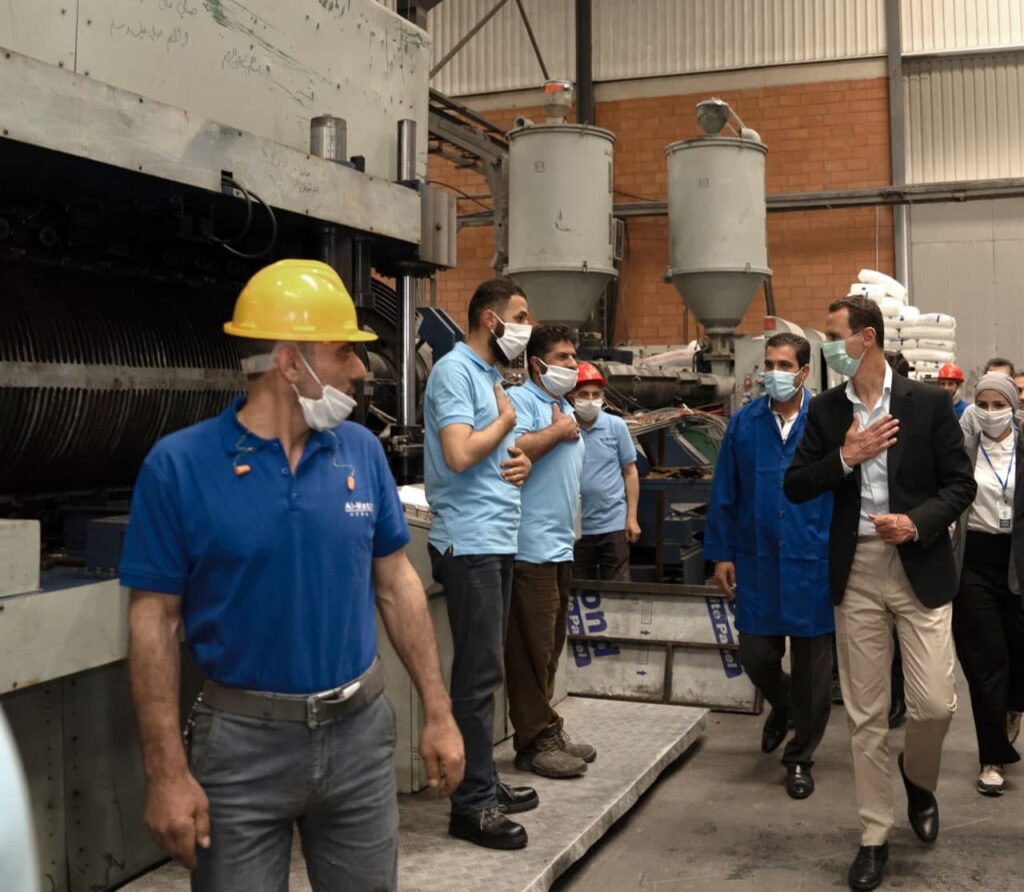 The Syrian Presidency which reported the visit said: During the visit, President Assad met with workers, technicians, and factory owners, and held talks with them about the production process, its requirements, and ways to support this process, stressing that increasing production is the most important goal for the advancement of the economy and the investment of available human and technical energies.