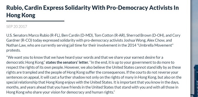 Tom Cotton is a long time supporter of the NED-sponsored “pro-democracy” “demonstrators” in Hong Kong. Somehow, he has remained unaware that his little friend, Joshua Wong — who has full access to our Capitol Hill politicians, unlike us American serfs who pay the bills — has refused to condemn the degenerate violence perpetrated by the sociopaths yearning to breathe free.