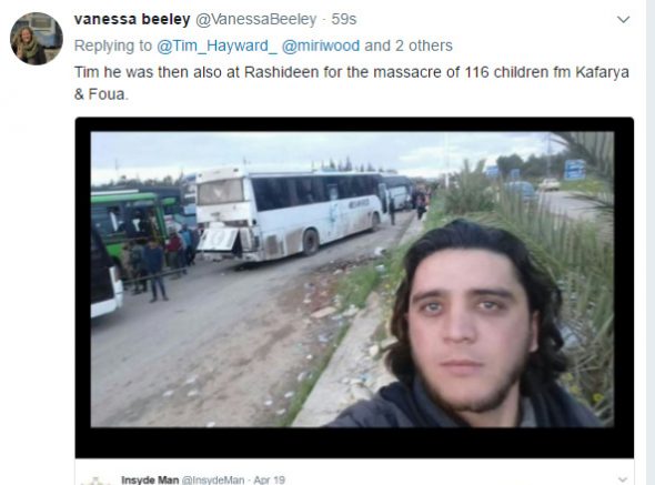 Hassan also managed a selfie in al Rashidin, prior to the massacre of around 130 civilians released from 3 years of captivity, exchanged for terrorists. The slaughter was too great to be completely ignored by NATO media, so it was rearranged to be made into a propaganda attack against Syria (‘forced displacement’ fraud), and used as another bloody fundraiser by SCAMS. CNN — terrorists most trusted name in news — introduced another terrorist sculpted into hero, a magician who had previously been interviewed from Khan Sheikhoun and pre-liberated Aleppo.