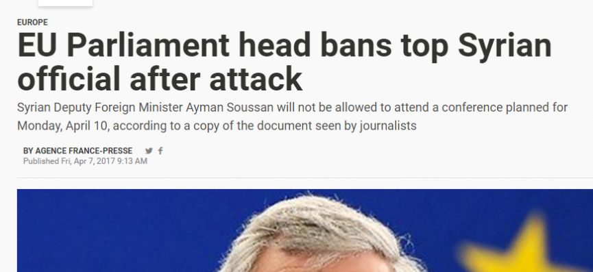In an impressive breach of diplomacy, the MEP banned Syria’s Deputy FM from attending a conference on Syria.