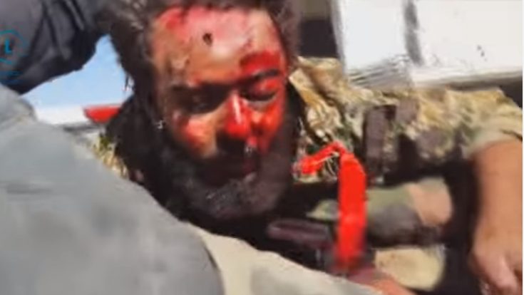 Close up of brutalized, martyred Syrian soldier who defended his country from foreign-backed human garbage
