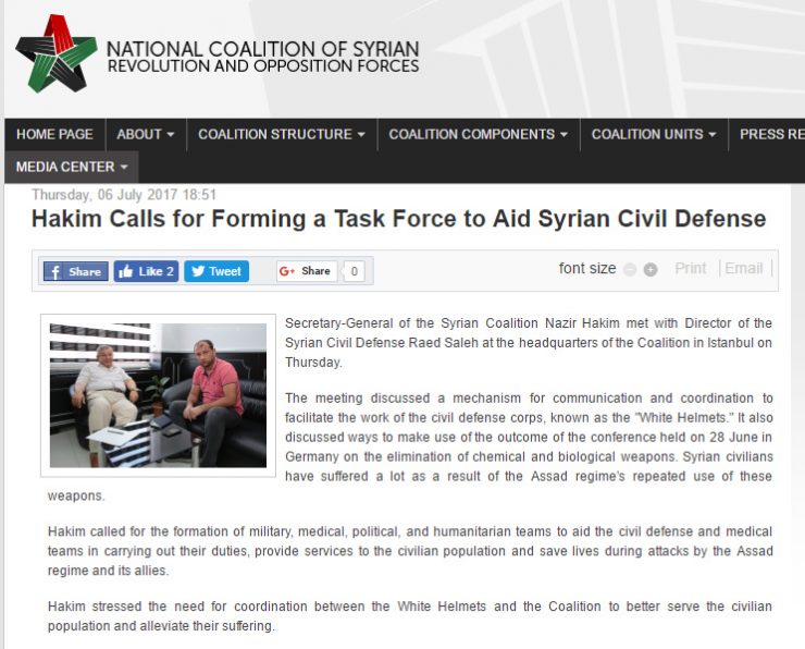 Though Wikipedia reports it is headquartered in Idlib, none of these NATO and Gulfie sponsored suits has been photographed amidst Jabhat al Nusra and the White Helmets. Their election hoaxes are always held in Istanbul, which is in Turkey, not in Syria, and their website reports Istanbul as headquarters.