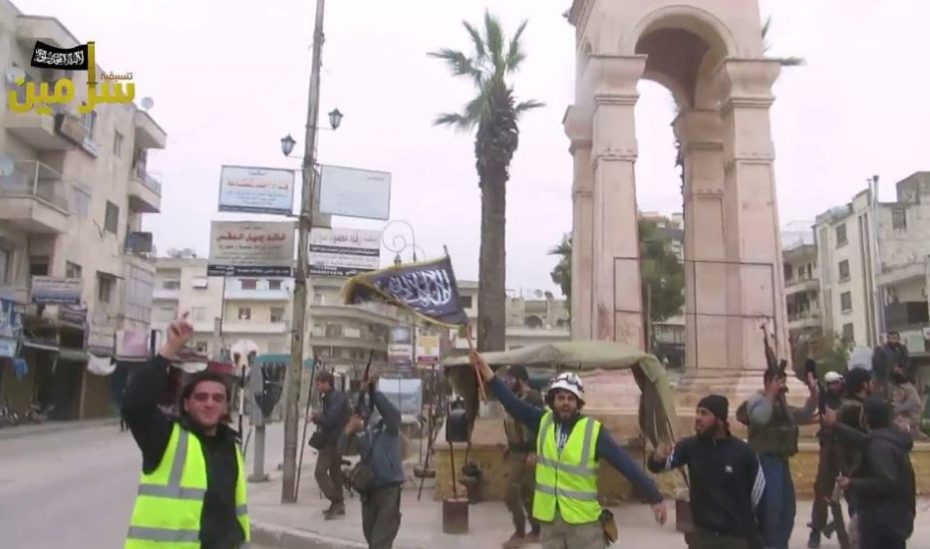White Helmets celebrate with armed Nusra the terrorists occupation of Idlib